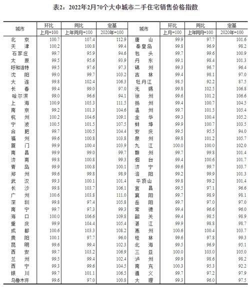 2月份,70个大中城市中,新建商品住宅和二手住宅销售价格环比上涨城市分别有27个和10个,环比下降城市分别有40个和57个。