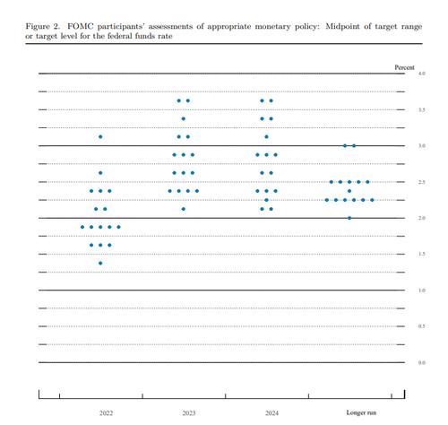 此外,在美联储同时公布的经济预测中,该行预计今年美国的通胀将达到4.3%——明显高于此前的预期,但2024年将回落至2.3%。另外,美联储对美国2022年经济增长的预期从4%下调至了2.8%,但对失业率的预测几乎没有变化。