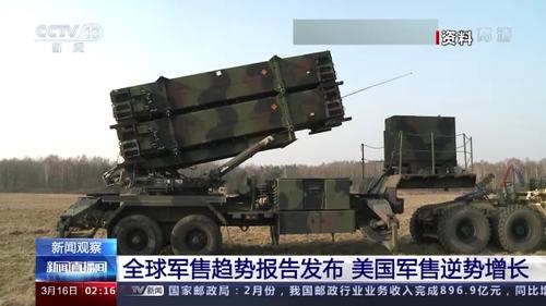 据央视新闻,瑞典斯德哥尔摩国际和平研究所14日发布全球军售趋势报告。报告显示2017年至2021年间,全球武器交易量比前一个五年有所下降,但同期美国海外军售却大幅上升。