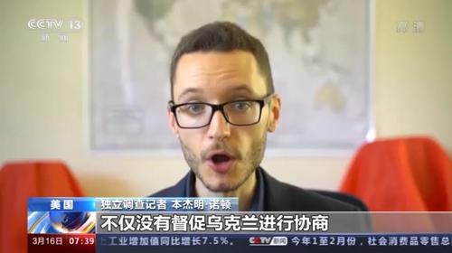 独立调查记者 本杰明·诺顿:不仅没有督促乌克兰进行协商,美国及北约反而让危机升级,美国及北约仍然在不断地向乌克兰输送上亿美元的军事装备和武器,甚至还在讨论向乌克兰支援战机,这些都在让冲突更加恶化。