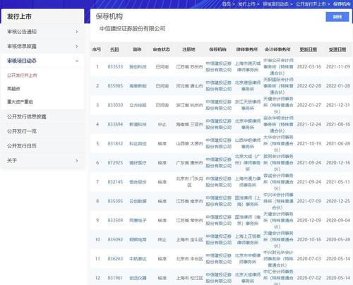 北交所官网信息显示,中信建投目前担任17家上市公司的保荐机构,其中有12家已核准上市、终止状态1家、中止状态1家,另有3家(包括骏创科技在内)审查状态为已问询,整体来看收获颇丰。