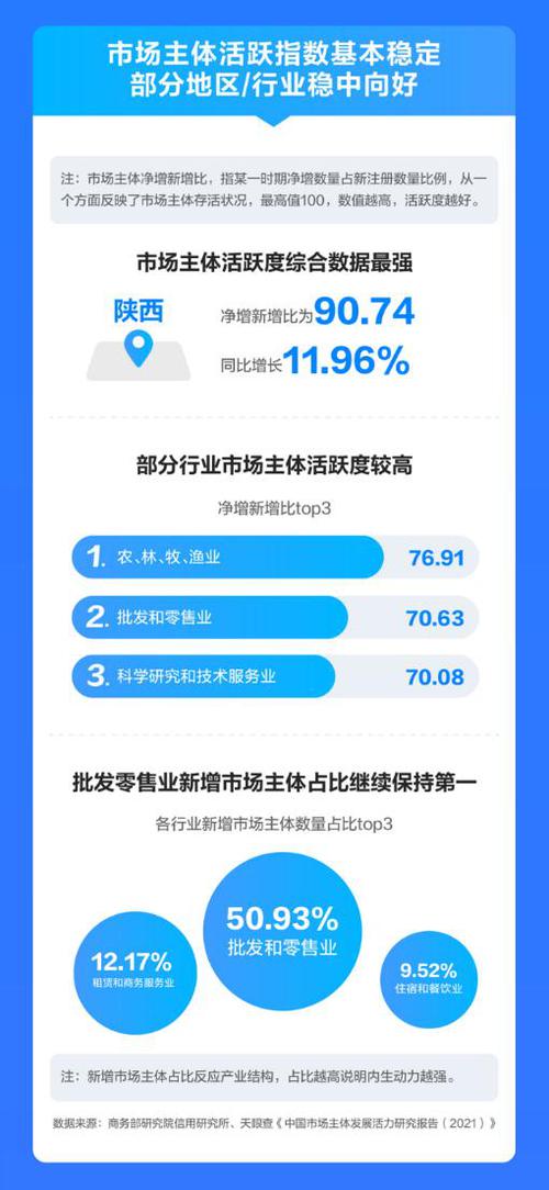 2021市场主体活跃度:陕西最高,农林牧渔行业第一