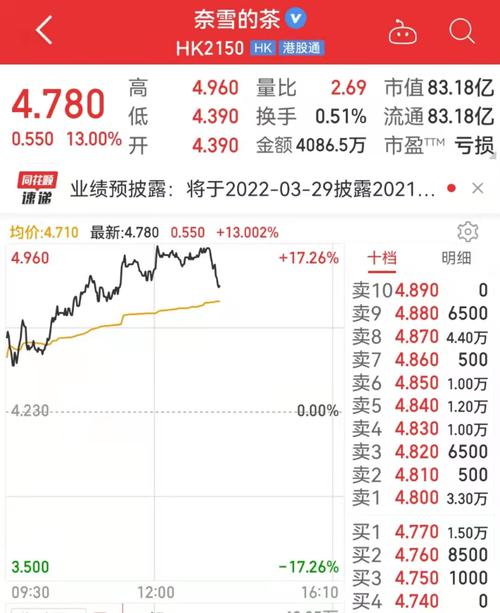 盘面上,截止发稿,奈雪的茶股价涨13%,报4.78港元/股,总市值83.18亿港元。
