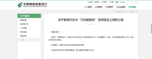 邮储闪光卡“闪光翻翻乐”活动延迟上线
