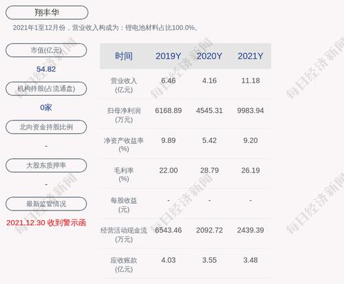 2021年1至12月份,翔丰华的营业收入构成为:锂电池材料占比100.0%。
