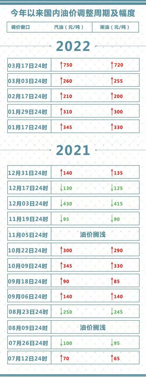 国家发改委微信号消息,本次油价调整具体情况如下:国内汽、柴油价格每吨分别提高750元和720元。