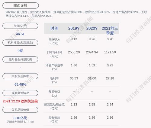 2021年1至6月份,陕西金叶的营业收入构成为:烟草配套业占比66.0%,教育业占比23.66%,房地产业占比3.32%,互联网业务占比3.14%,贸易占比2.15%。