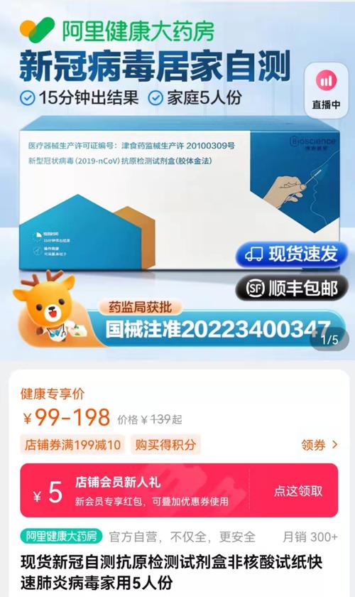 另外,3月14日凌晨,天猫健康首发新冠抗原自测产品已经上线。消费者在淘宝APP搜索“新冠自测”即可进入产品页面购买。
