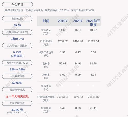 2021年1至6月份,华仁药业的营业收入构成为:医药商业占比77.55%,医药工业占比22.45%。