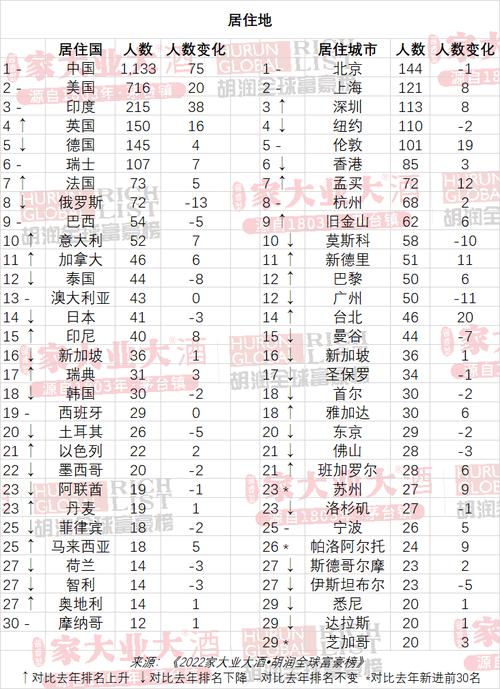 中国以1133位十亿美金企业家蝉联第一,比去年增加75人;其次是美国716位,增加20人;印度排名第三,有215位,增加38人;英国超过德国,以150位排名第四。