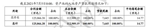 而湖北消金的ABS入池资产贷款用途则全部为装修类,占比为100%。