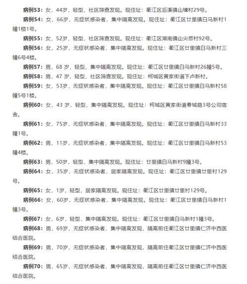 截至3月17日24时,据中国疾病预防控制信息系统显示,衢州本轮疫情累计报告阳性感染者70例,其中确诊病例56例,无症状感染者14例。