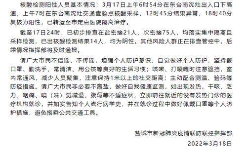 3月17日,江苏盐城市在G15高速东台南沈灶出入口查验点对来盐返盐人员核酸检测中,发现1例新冠病毒核酸检测阳性人员,立即启动应急响应机制,迅速组织开展流调溯源、场所封控、人员转运、场所消毒等工作。