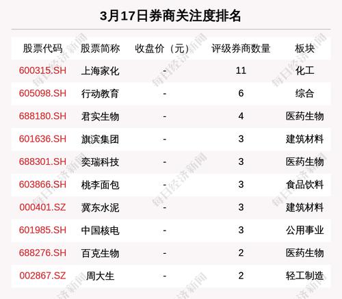 从券商对个股的关注程度来看,有15只个股获得多家券商关注,券商关注数量排名居前的个股是上海家化(600315.SH)、行动教育(605098.SH)、君实生物(688180.SH)。