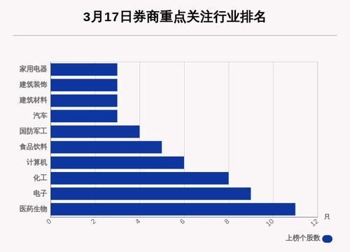 从券商对行业的关注度来看,券商关注个股数居前的行业分别是医药生物、电子、化工。
