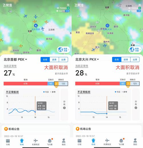 其中,北京首都国际机场取消航班678架次,北京大兴国际机场取消航班658架次,合计1336架次航班被取消。