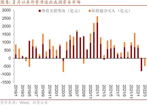 综上所述,当前中国面临的国际资本外流压力主要来自外部因素,即俄乌冲突带来的全球避险情绪上升和流动性环境恶化,以及中美政策分化下的中美利差收窄,而支持人民币汇率坚挺的力量可能来自俄罗斯央行的储备资产转换与实体部门结汇。