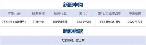 本周将有6只新股发行。3月21日发行的是仁度生物;3月22日发行的是荣昌生物;3月23日发行的是长光华芯、天益医疗;3月24日发行的是中复神鹰;3月25日发行的是铭利达。