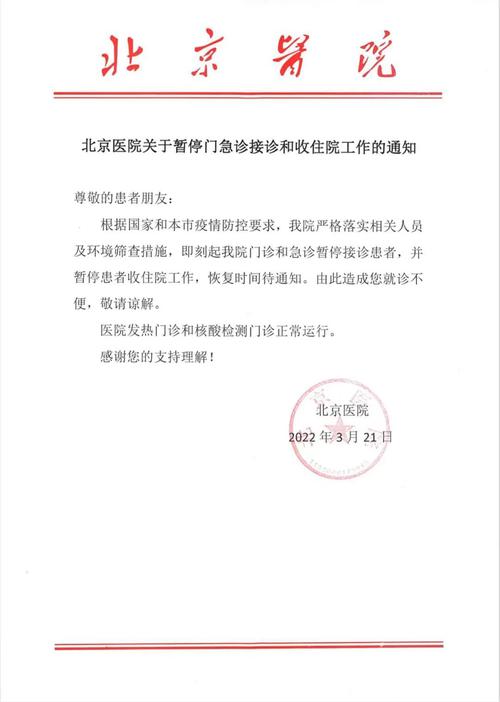 另据北京医院公众号消息,根据疫情防控要求,北京医院今起暂停门急诊接诊和收住院工作。
