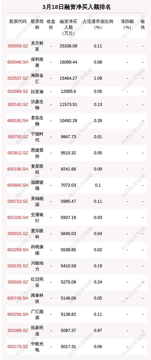 从融资资金净买入金额来看,共有6只个股净买入金额超亿元,其中东方财富、保利发展、海联金汇排名前三,买入金额分别为2.53亿元、1.61亿元、1.55亿元。