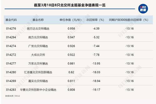 从目前来看,8只北交所主题基金分化为两个阵营,“跑赢大盘”和“跑输大盘”的基金各占一半,同时单位净值“9字头”和“8字头”也是各占一半。