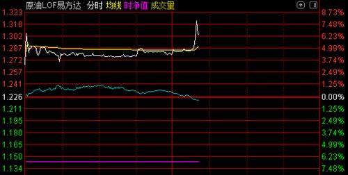 原油LOF易方达下午盘中冲高,一度上涨超8%!此外,嘉实原油LOF、南方原油LOF等跟随走高。