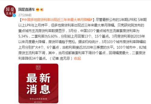 3丨中国多地房贷利率出现近三年来最大单月降幅
