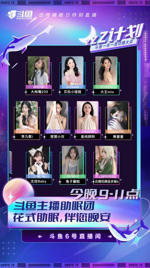 除了6号直播间的主会场,斗鱼的“哄睡高手”们也将纷纷献技,充分利用自身的才艺花式整活,陪伴大家一起香甜入眠。由大肉嘎233、贝拉小姐姐、大王mio、李九歌i、琵琶小灰、是纯妍阿、熊壹壹、尤优Baby、鱼子酱啦、云樱花颜金步摇s等斗鱼主播组成的“主播助眠团”,将通过温柔的睡前故事、轻柔动听的歌声、优美的琵琶曲以及舒缓的睡前瑜伽等方式,帮助广大水友缓解身心压力、轻松入眠,让大脑和身体得到充分的休息,元气满满的迎接新一天的生活。