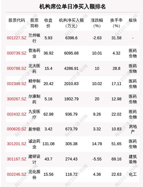 2丨整点投资|龙虎榜:九安医疗单日净买入额最多,涉及机构专用席位的个股有17只