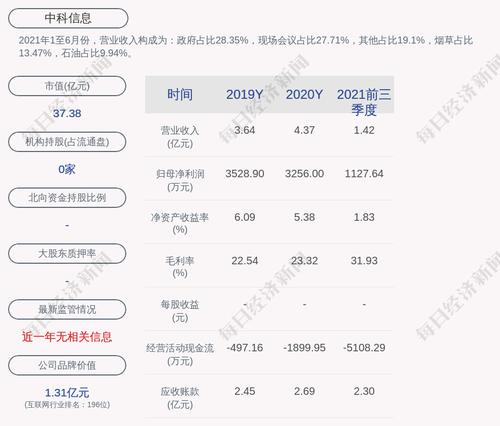 2021年1至6月份,中科信息的营业收入构成为:政府占比28.35%,现场会议占比27.71%,其他占比19.1%,烟草占比13.47%,石油占比9.94%。