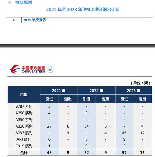据东方航空2020年年报,公司2021年至2023年计划引进5架B787系列飞机及46架B737系列飞机,退出19架B737系列飞机。
