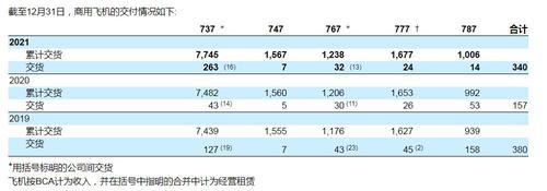 据波音2021年年报,波音是一家领先的商用飞机制造商,并提供一系列商用喷气式客机,旨在满足全球航空公司广泛的客运和货运需求。这一系列生产中的商用喷气式飞机包括737窄体机型和747、767、777和787宽体机型。777X计划和某些737MAX衍生产品的开发仍在继续。