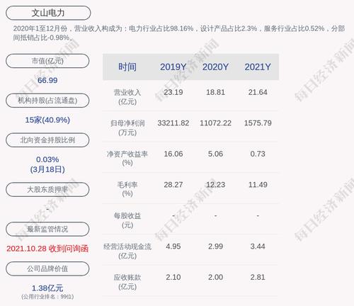 每经AI快讯,文山电力(SH 600995,收盘价:14元)3月21日晚间发布年度业绩报告称,2021年营业收入约21.64亿元,同比增加15%;归属于上市公司股东的净利润盈利约1576万元,同比减少85.77%;基本每股收益盈利0.0329元,同比减少85.69%。分配方案为:拟每10股派发现金红利0.1元(含税)、不送红股、不转增。