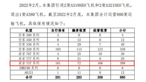 根据中国南方航空股份有限公司2022年2月主要运营数据公告显示,截至2022年2月末,南航合计运营880架飞机,其中波音737系列合计运营399架,占比约45.3%。