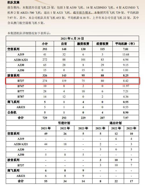 根据中国国际航空股份有限公司2021年半年度报告显示,截至2021年6月30日,国航运营飞机共729架,其中波音737系列合计运营274架,占比约37.6%。