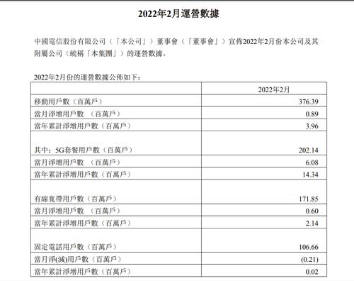 中国电信(00728.HK):2022年2月移动用户数净增89万,当年累计净增396万;5G套餐用户数达2.0214亿,当月净增608万。