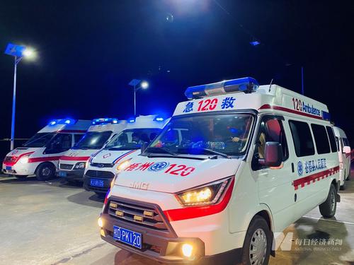 应急指挥部现场的120急救车辆。图片来源:每经记者 舒冬妮 摄