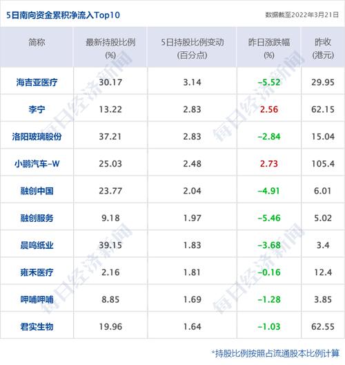 3月21日,南向资金净买入10.80亿港元。南向资金成交活跃个股榜单中,净买入个股共8只,金额最多的是中国移动(0941.HK,收盘价:53.05港元),净买入2.296亿港元;净卖出个股共4只,金额最多的是华润电力(0836.HK,收盘价:14.72港元),净卖出1.142亿港元。