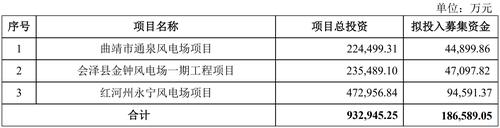 3月1日,云南能投发公告称,拟定增募资不超过18.66亿元,全部投入旗下三个风电项目。