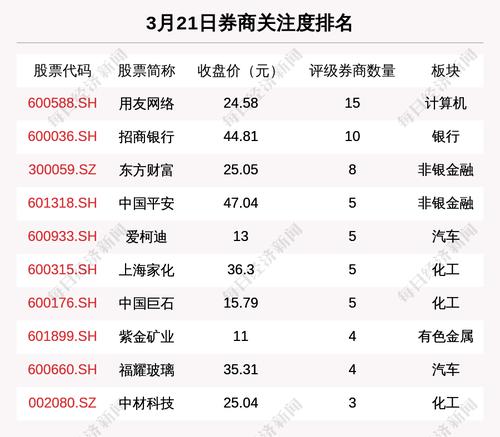 从券商对个股的关注程度来看,有29只个股获得多家券商关注,券商关注数量排名居前的个股是用友网络(600588.SH)、招商银行(600036.SH)、东方财富(300059.SZ)。