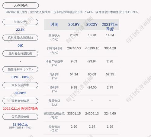 2021年1至6月份,天创时尚的营业收入构成为:皮革制品和制鞋业占比87.74%,软件信息技术服务业占比11.99%。