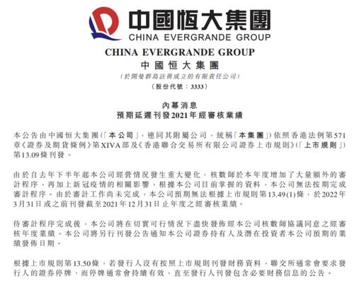 同时,中国恒大、恒大物业、恒大汽车都延期发布2021年业绩报告。恒大物业还公告称,公司有约为人民币134亿元的存款,为第三方提供的质押保证金,已被相关银行强制执行。
