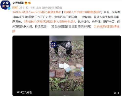 从目前的消息来看,据央视新闻报道,目前,东航客机mu5735的搜救工作正在进行。坠机区域三面环山、山路陡峭,救援人员手脚并用攀爬搜救。坠机核心区现场发现失联人员随身物品,包括钱包、身份证、银行卡等,尚未发现失联人员。