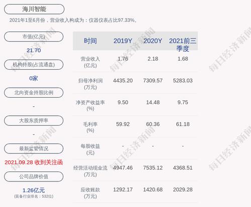 2021年1至6月份,海川智能的营业收入构成为:仪器仪表占比97.33%。
