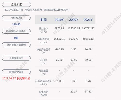 2021年1至12月份,金开新能的营业收入构成为:新能源发电占比98.43%。