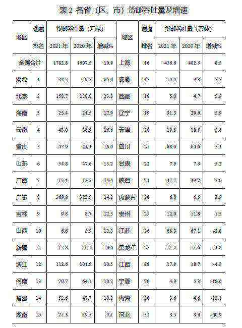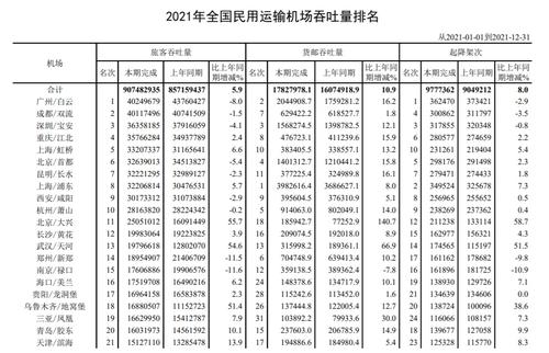 2021年全国民用运输机场吞吐量排名榜 湖北旅客、货邮吞吐量增幅第一