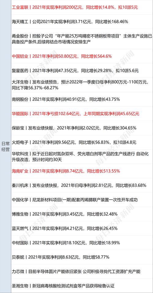 NO.4 工业富联:3月22日,工业富联公告,董事会同意公司及公司子公司使用最高额度不超过476亿元闲置自有资金投资银行、银行理财子公司等金融机构发行的安全性高、流动性好、中短期(不超过一年)、保本的理财产品和结构性存款,在上述额度范围内,资金可以滚动使用。同日,工业富联披露年报,2021年实现营业收入4395.57亿元,同比增长1.80%;净利润200.1亿元,同比增长14.80%。拟每10股派发现金红利5元(含税)。