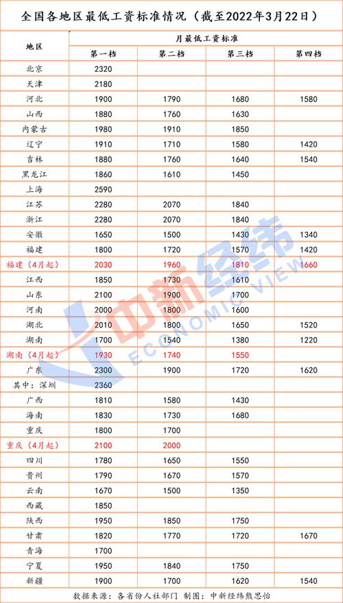 中新经纬3月23日电 (熊思怡)打工人注意!4月起,湖南、重庆、福建3省份将上调最低工资标准,4地年内调整可能性较大,22省份已调完。对你影响有多大?来一睹为快!