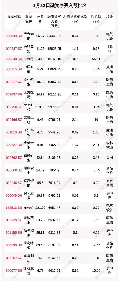 从融资资金净买入金额来看,共有6只个股净买入金额超亿元,其中天合光能、海联金汇、N和元排名前三,买入金额分别为3.44亿元、1.58亿元、1.52亿元。