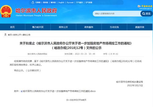 3丨哈尔滨市拟废止实行区域性房地产限售政策